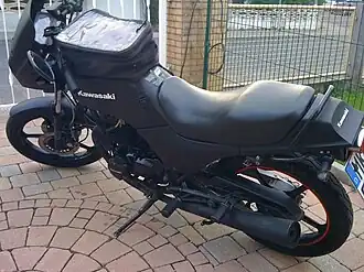 The Kawasaki Gpz305 was a 306 cc (18.7 cu in) twin cylinder air-cooled SOHC four-stroke motorcycle, produced in 1983 to 1994 by Kawasaki in Japan. The model evolved from the earlier ER250 model and used an overbored 61 mm × 52.4 mm (2.40 in × 2.06 in) version of the 249 cc engine first produced in 1979. Kawasaki gave this model the "Gpz" nomenclature to add to its expanding air-cooled sports bike range, and was marketed as a sports machine. It originally had chain final drive but in 1983 it had a new Kevlar belt final drive first seen on Kawasaki's American styled cruisers.