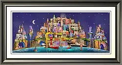 After the controversy, Drury moved away from oil on canvas and created a new style of artworks using 3D modelling. He used this technique to produce urban landscapes and cityscapes, featuring well-known local landmarks combined with elements of humor and political satire. Each picture can take up to three months to complete due to the complex modelling process and the high levels of detail included. Most of the scenes include a red telephone box, a red postbox and a clock which tells the same time. Drury deliberates for hours on inconsequential details such as a perforated brake disc on a Harley-Davidson motorbike.[4] Many British and international towns and cities are featured in the artworks.[7][8][9]