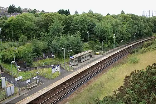 The track was lifted in 1987/8, but the formation was kept intact and this made the eventual reinstatement of the line as part of the Larkhall branch reopening project in 2005.[2] Reopening the connection meant that Maryhill Line services no longer had to run empty to Knightswood North Junction (near Westerton) to reverse before returning to Queen Street, freeing up capacity for the extra trains serving the new line to Larkhall to run through Westerton and onwards to Milngavie. A station to serve the Kelvindale & Dawsholm area was proposed by SPT as part of the scheme (the station was originally to be called Dawsholm, but later changed to its present name) – though it wasn't ready in time for the reopening of the 1 mile (1.6 km) branch in April 2005, services subsequently began calling later that year.