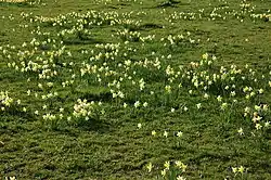 Example of wild daffodils (Narcissus pseudonarcissus) in a meadow setting