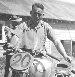 Ken Mudford (17 April 1923 – 17 May 2004) was a New Zealand professional Grand Prix motorcycle road racer.[1] He competed in the FIM motorcycle Grand Prix world championships from 1951 to 1953 and was a member of the New Zealand team that competed in the Isle of Man tourist trophy races. Mudford is notable for winning the 350 class at the 1953 Ulster Grand Prix when the Norton factory racing team asked him to replace the injured Ray Amm.[1] Mudford rode to victory ahead of AJS riders Bob McIntyre and Rod Coleman.[2] In 1952 he was 8th in the Isle of Man Senior TT and he was 7th in the Junior TT in 1953.[3]