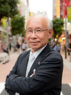 As in his 2012 campaign, he ran as an independent. He was again endorsed by the Japanese Communist Party, the Social Democratic Party.[15] After the emergence of Morihiro Hosokawa's candidacy, former Prime Minister Naoto Kan, who had backed Utsunomiya in his previous bid for governor in 2012, called on him to leave the race out of fears that he would split the anti-nuclear vote in Tokyo.[16] Utsunomiya came in second place with 982,595 votes, with victory going to Yoichi Masuzoe with 2,112,979 votes.