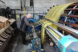 Kerry Woollen Mills are one of the last remaining traditional wool mills still manufacturing in County Kerry. The company was founded over 300 years ago. The mill's machinery was originally driven by the River Gweestin, and its water was also used for washing and dying the wool. The mill was run by the Sealy family for many generations since its inception in 1760, and brought into the capable hands of the Eadie family in 1904, who had gained experience in the wool manufacturing business for many years in County Fermanagh and Scotland and are now successfully managing the mill in the fourth generation.[1] Wool is spun, dyed and woven on the premises at the back of a well-stocked showroom, where yarns and the finished products are displayed.[2]
