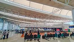 Initially, the terminal area was 121,000 square metres (1,302,433 sq ft) and included two concourses with domestic and international gates, handling 11 million passengers a year. As construction proceeds, the terminal was to expand to 209,151 square metres (2,251,283 sq ft), with a passenger capacity of 30 million passengers per year by 2019, with plenty of space left over for phase II expansion.[19] Citilink was the first airline to obtain permission to fly the Kertajati-Juanda route, starting in June 2018 and using an Airbus A320 aircraft.[20]