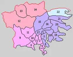 On April 1, 1889, with the establishment of the municipalities system, the district was organized into two towns (Sakari and Takata) and 20 villages.