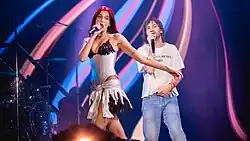 Parker performing with Dua Lipa at the Glastonbury Festival 2024