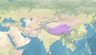 The Khoshut Khanate was a Mongol Oirat khanate based in the Tibetan Plateau from 1642 to 1717. Based in modern Qinghai, it was founded by Güshi Khan in 1642 after defeating the opponents of the Gelug school of Tibetan Buddhism in Tibet. The 5th Dalai Lama established a civil administration known as Ganden Phodrang with the aid of Güshi Khan. The role of the khanate in the affairs of Tibet has been subject to various interpretations. Some sources claim that the Khoshut did not interfere in Tibetan affairs and had a priest and patron relationship between the khan and Dalai Lama while others claim that Güshi appointed a minister, Sonam Rapten, as de facto administrator of civil affairs while the Dalai Lama was only responsible for religious matters. Güshi Khan accepted the nominal suzerainty of the Qing dynasty in 1654, when seal of authority and golden sheets were granted by the Shunzhi Emperor.[1] In the last years of the khanate, Lha-bzang Khan murdered the Tibetan regent and deposed the 6th Dalai Lama in favor of a pretender Dalai Lama.