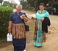 • strips of pandanus leaves, often painted in bright colours. Either hanging loose, or plaited together. The salusalu is a long kiekie, especially for Haʻapai.