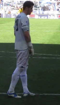 Casilla still sat on the bench for Espanyol's first game in 2010–11 but, on 31 August 2010, moved again on loan, to second division club FC Cartagena.[10] Subsequently, returned to the Pericos, he constantly battled for first-choice status with Álvarez.[11]