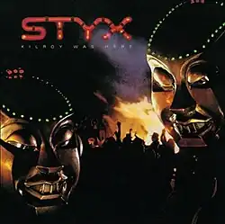 Kilroy Was Here is the eleventh studio album by the American rock band Styx, released on February 22, 1983.[8] A concept album and rock opera about a world where rock music is outlawed, it is named after a famous World War II graffiti tag, "Kilroy was here." It was the last album of original material to be released by the "classic" lineup of Dennis DeYoung, Tommy Shaw, James "J.Y." Young, John Panozzo, and Chuck Panozzo.