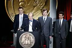 Ian Cheney, Aaron Woolf, Curtis Ellis, and Sam Cullman accept the Peabody Award in May 2009