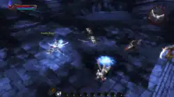 The real-time combat focuses on the player using their two equipped weapons, and active skills unlocked through skill trees and activated through the players magic point (MP) meter. Available weapons include two sword types, two types of daggers, bows, hammers, and chakrams.[7][8][9] The player can also block with a shield accessory with an enemy being stunned with correct timing, or dodge to avoid attacks. Some movement options are tied to specific character Abilities.[4][9][10] Combat is based around button timing, with different combinations triggering alternate attacks and more attack options unlocking as the player's level increases.[6][9] Enemies are locked to a specific level range when entering an area of the world.[6] During combat, an energy called Fate is rewarded if the player uses a varied range of attacks. With a full Fate meter, the player can trigger "Reckoning" mode, which slows down time for everyone except the player for as long as the meter has Fate energy. An enemy down to low health can be killed through a cinematic attack, with the player able to press a button to gain an experience boost, killing all low-health enemies in the process.[1][11] Enemies drop in-game currency and randomised loot including weapons, crafting materials and items such as potions.[12] If the player runs out of health, the Fateless One dies and the player must restart from a previous save.[2][11]