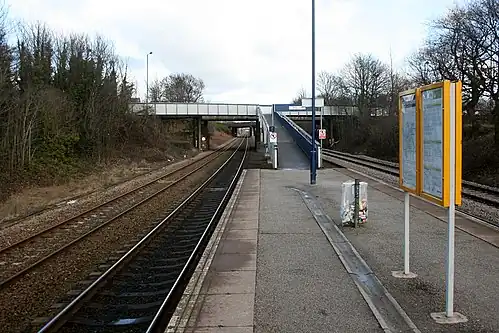 Kirk Sandall railway station serves the suburb of Kirk Sandall in Doncaster, South Yorkshire, England. The station is 4 miles (6 km) north of Doncaster on the South Humberside Main Line. The current station opened by British Rail in 1991 and is not on the site of the original station, which was about 0.5 miles (1 km) up the line eastwards.
