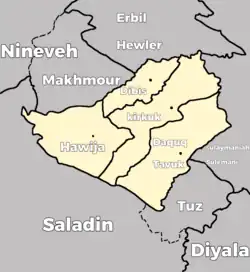 Kirkuk District (Arabic: قضاء كركوك, Kurdish: قەزای کەرکووک, Turkish: Kerkük ilçesi)[1] is a district in Kirkuk Governorate, Iraq. Its administrative center is the city of Kirkuk.