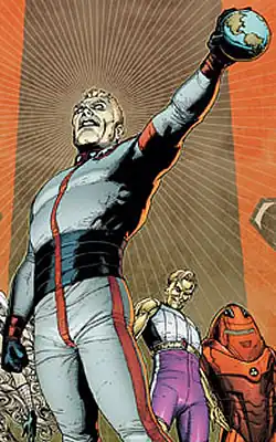 In Final Crisis: Legion of 3 Worlds, Earth-Man and the Justice League of Earth's members join the Legion of Super-Villains.[6] They are defeated, but Earth-Man gains a Green Lantern ring from Dyogene, a creature living inside the planet Oa.[7][4] However, Dyogene takes the ring back after Earth-Man uses it for evil.[8][4]