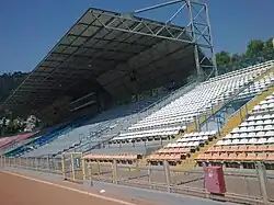 The stadium, officially called Haifa Municipal Stadium or Luigi Antonini Stadium, was built in 1955, as a gift from the International Ladies Garment Workers Union. It seats 14,002 among its 14 gates. Ownership of the stadium belonged to the Municipality of Haifa, though it was managed by a suborganization called ETHOS. The stadium was officially opened on 14 September 1955, with a match between Haifa XI and Tel Aviv XI.[1] On 24 September 1955 the first Haifa derby was played at the stadium, with Maccabi beating Hapoel 4-1.[2] Both clubs had previously played at Kiryat Haim Stadium in the Kerayot area of Haifa. The first match played at the stadium, while it was being built, was held during the 1953 Maccabiah Games, between Israel and Finland.[3] On October 4, 1956, the stadium was dedicated by Haifa's Mayor Abba Khushi at ceremonies attended by Mr. Antonini, vice-president of the International Ladies' Garment Workers' Union, and a delegation of Italian-American trade union leaders.[4]