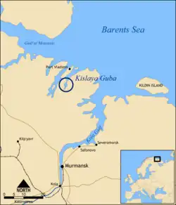 Kislaya Guba (meaning sour bay in Russian) is a fjord on the Kola Peninsula near Murmansk, Russia. The fjord is connected to the Barents Sea to the north and is primarily known as the site of the experimental tidal power project, Kislaya Guba Tidal Power Station.[1]