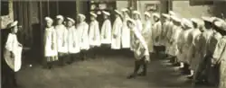 There were eleven places in New York City where the "kitchen-garden" system was being taught. The Wilson Industrial School for Girls, 125 St. Mark's Place, was where the system originated in 1876. At first it was taught slowly, lesson by lesson, as ideas were developed by Huntington. In 1877, 35 young women volunteered to teach, there were classes morning and afternoon, and nearly 200 children weekly were taught. In 1878, there were only morning classes and a proportionate number of children taught. In 1879, a class of 24 children came daily for an hour and a half, a different lesson being taught every day, as in kindergarten, having its molding, pricking, and dishwashing days. This last experiment proved the best, the same plan was carried out the following year. Many of the children taught in 1876 and 1877 reported commendation from employers.[2]