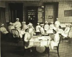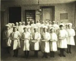 The special work in New York of the association was the engaging of teachers and the overseeing of kitchen-garden classes. During the first two years, a room was rented from the New York Cooking School, and here classes were held, composed of girls taken from the city grammar schools. The association teacher also was engaged by several institutions to teach classes.[2]