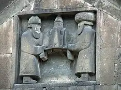 Kiurike I (on the left) and his older brother Smbat II of Armenia depicted in a sculpture at Haghpat Monastery