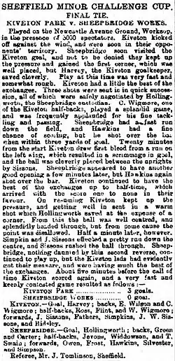 - ^ Sheffield Independent, 18 April 1892, page 8