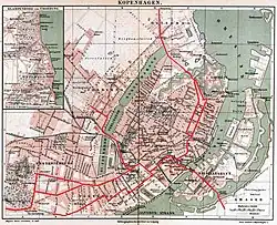 Kjøbenhavns Sporvei-Selskab was founded by C. F. Tietgen in 1865 as a replacement of the UK-owned Copenhagen Railway Company, which had opened Copenhagen's first tram line in 1863 but had been liquidated. It developed into the largest operator of tram lines in the city before it was merged with four other companies under the name De kjøbenhavnske Sporveje on 1 August 1898.[1]