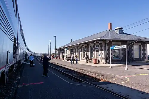 Klamath Falls station is a train station in Klamath Falls, Oregon, served by Amtrak's Coast Starlight. Located at 1600 Oak Avenue, the station building has a waiting room with a ticket agent. Klamath Falls is the southernmost station in Oregon.[3] Via bus connections, it serves a large swath of southwestern Oregon, including Medford.