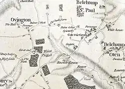 Knowl Green comprises houses, cottages, two farms with associated buildings, and the Cherry Tree public house. The Cherry Tree was recorded as such in 1933.[2] An arm of Belchamp Brook, a tributary of the River Stour, rises at the north of Knowl Green and flows by the hamlet.[3]