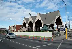 The original church was built in 1880 to a design by Samuel Farr. When the attendance increased beyond the capacity of the building, a new church was built in 1902 alongside the first one to a design by Robert England.[2] Located on the corner of Bealey Avenue and Victoria Street, it was one of Christchurch's historic buildings that was badly damaged during the 2011 Christchurch earthquake, but which has been repaired to a design by Wilkie and Bruce Architects using the remaining wooden frame.[3] Other buildings in the Knox complex remained functional.