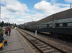A new station building designed by Ilpo Väisänen was constructed at Kolari in 1998, in the style of a goahti.[5] Most trains (both freight and passenger) at Kolari are hauled by VR Class Dr16 diesel locomotives, with smaller Dv12 locomotives also seeing use.
