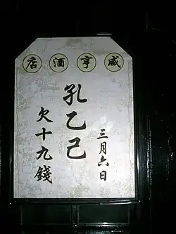 the board in Xianheng Tavern which wrote that Kong Yiji defaulted money on March 6th