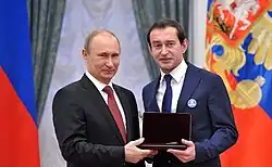 Konstantin Khabensky being awarded the title People's Artist of Russia in 2012 by President Vladimir Putin