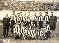 Two Dutch teams of 12 players played a match against each other at 6 August 1928. One team wore red-white shirts and the other team played in red-black shirts. The referee was H. W. Vliegen, LL. B. and the Assistant referees (linesmen) were G. Leeuw and W.C. Schaap, C.E..