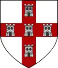 ![]() shield, charge bendy Gules and Argent, helmet, torse and red and white mantling; in crest demi Lion rampant Gules charged with four lilies holding in the paws a Banner of arms Gules flowing to the dexter charged with two cross | |