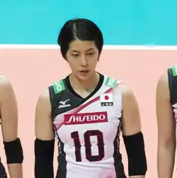 In 2009, she made her debut in Japan's senior national team, participating in the 2009 FIVB Women's World Grand Champions Cup[1] and in the 2010 FIVB Volleyball World Grand Prix.[2] She also participated in the 2017 FIVB World Grand Champions Cup, where she won the Best Setter Award.[3]