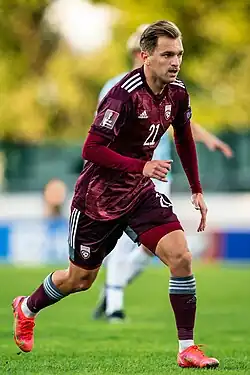Krišs Kārkliņš (born 31 January 1996) is a Latvian footballer who plays as a defender or midfielder for Valmiera and the Latvia national team.[1]