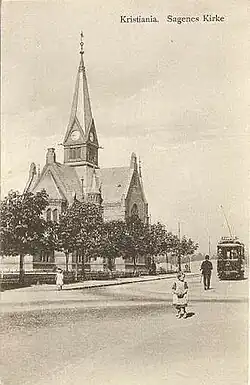 By 1897 the Liberal Party had received a majority in the municipal council.[4] That year there was a political debate regarding an expansion of the KSS' tramway towards St. Hanshaugen and Sagene, two areas which were being developed. KSS applied to build a tramway there, but on 23 September 1897 the municipal council voted to establish its own tram company and build a line to St. Hanshaugen Sagene itself.[2]