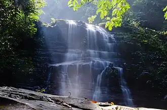 Kubah National Park (Malay: Taman Negara Kubah) is a national park in Sarawak, Malaysia. It is located in the Matang Range, approximately 20 km (12 mi) from Kuching.[3] The park, which spans 2,230 hectares (5,500 acres), is home to three notable sandstone peaks that can be seen from the city on clear days: Gunung Serapi, Gunung Selang, and Gunung Sendok. The park's landscape consists primarily of dipterocarp forest, with areas of kerangas and scrub forest interspersed throughout. This varied terrain supports a wide range of plant and animal life, including numerous palm species, rare orchids and ferns, as well as bearded pigs, hornbills, squirrels, mouse deer, reptiles, and amphibians.[2]