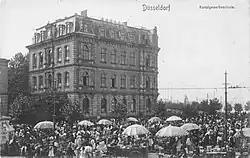 The Kunstgewerbeschule Düsseldorf was opened on 3 April 1883 and closed at the end of the school year 1918. In 1919, its architectur training was transferred to the Kunstakademie Düsseldorf.