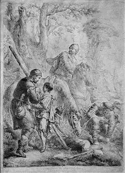 The Collier Defends the Saxon Prince against His Kidnapper, Kuntz von Kauffungen (engraving by Bernhard Rode, 1781)