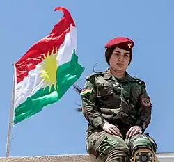 While in the Kurdish areas of Turkey and Syria, women play a dominant role in Kurdistan Communities Union (KCK) affiliated Apoist parties and administrations as co-governors, co-mayors, or even commanded their own female combat units, this never happened in Iraqi Kurdistan, "because the political leadership itself is conservative and patriarchal".[72] However, the Kurdish parties in Iraq there felt embarrassed by the national and international public comparing; in late 2015 an actual female Peshmerga unit for frontline combat was created.[72]