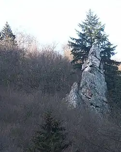 - Katzenstein (near the 555.2 metre spot height), rocks (NM), northeast of the Womrather Höhe