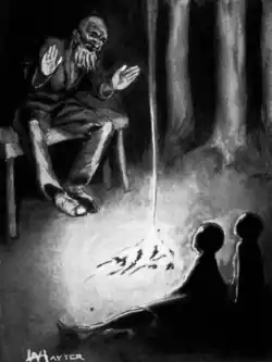 In addition to his illustrations, Hayter contributed numerous articles and stories, some of which were co-written with Gerald Bullett.[2][3] Notable titles include "The Weather Kingdom", The Land of Undh-Aneethe (a tale of subterranean life where coal and fairies coexist), and The Nimble Sixpence (featuring a three-legged sixpence and a beetle with blue glasses).[6] In 1912, Bullett praised Hayter's artistic abilities in an article for the magazine, describing him as a "born artist".[3]
