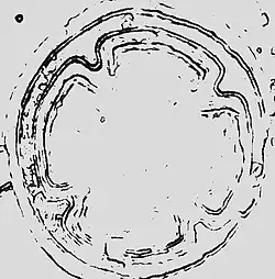 The inclination of the external rings, the presence of the channel, as well as the concavity of the basin all suggest that Monument 3 was meant to contain liquid. Fluid would flow into the centre of the basin.