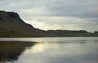 La Brava is a lake in the eastearn part of the Balcarce Partido in Buenos Aires Province, Argentina. It lies just on the border with General Pueyrredón, 40 kilometres (25 mi) northwest of the city of Mar del Plata and 25 kilometres (16 mi) east of the town of Balcarce. Located within Mount La Brava, the lake area is privately owned, although open to the public for fishing and camping. There are several campsites around the lake, like Ruca Lauquen on the east coast and the Fishing Club Balcarce on the north, both of them with recreational facilities and boat piers.[1] The lake is described as a rift lake or tectonic lake, probably a natural reservoir formed by dunes.[2] La Brava is the habitat of a number of bird species, like swans, ducks, coots, herons and gulls. Capybaras and otters dwell in its shores. The lake also supports a fish community dominated by the silverside and the dentudo.[3] The landscape has been compared with that of the lakes of western Patagonia.[4]