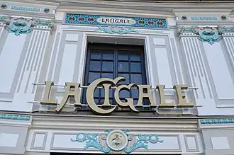 ![]() La Cigale sign above the door of the brasserie in Nantes | |