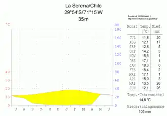 11. ^ "Temperatura Histórica de la Estación La Florida, La Serena Ad. (290004)" (in Spanish). Dirección Meteorológica de Chile. Archived from the original on 23 May 2023. Retrieved 23 May 2023.