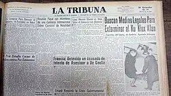La Tribuna was one of the most important daily newspapers in Paraguay's history. It was founded in 1925 in Asunción by Eduardo Schaerer, and was one of the country's leading newspapers for five decades.[1] La Tribuna was the first Paraguayan paper to be widely published across the country. Politically, La Tribuna was positioned between liberalism and traditional national politics. It opposed especially the dictatorial regimes of Higinio Morínigo and Alfredo Stroessner.[2]