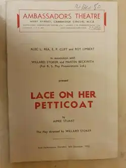 Lace on Her Petticoat is a play by the British writer Aimée Stuart. It takes place in a cottage on an island off the southwest coast of Scotland in the late Victorian era.