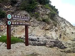 Hong Kong National Geopark sign in Lai Chi Chong.